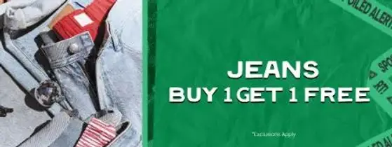 Hurry now, before its gone! Shop in store and buy 1, get 1 free jeans.
