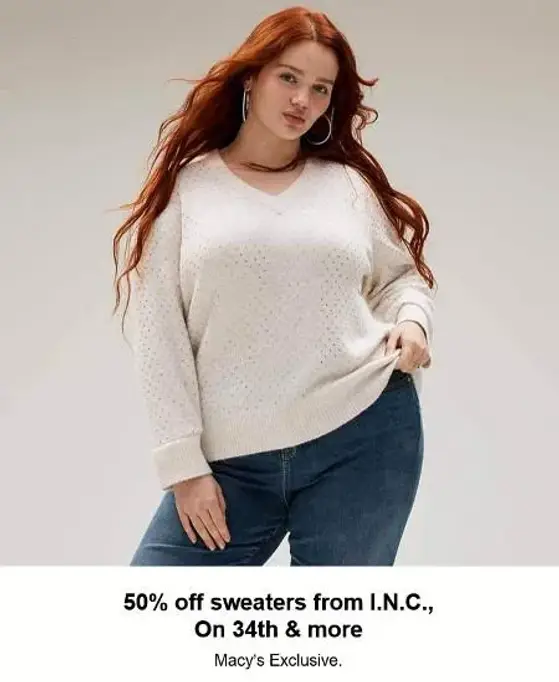 Get it now! Shop in store and get 50% off sweaters from I.N.C., On 34th & more.