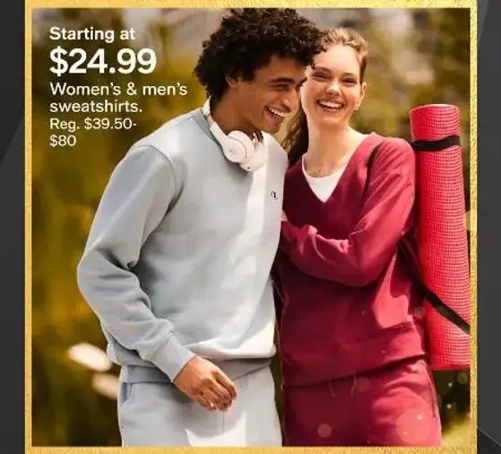 Get it while it lasts! Shop in store and get women's & men's sweatshirts starting at $24.99.