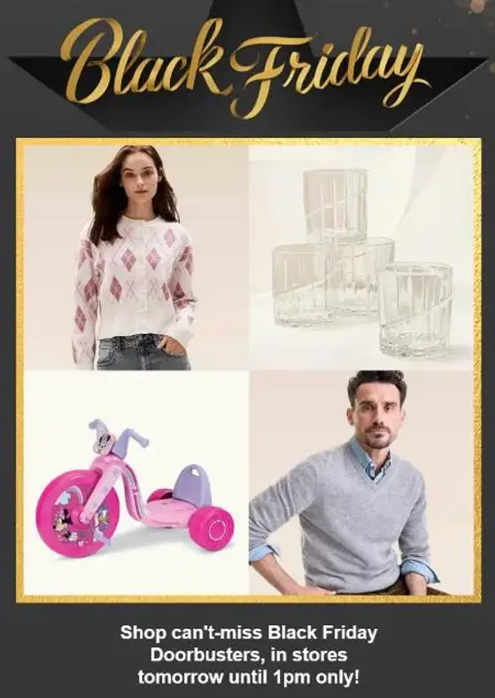 Shop can't-miss Black Friday Doorbusters, in stores until 1pm only!