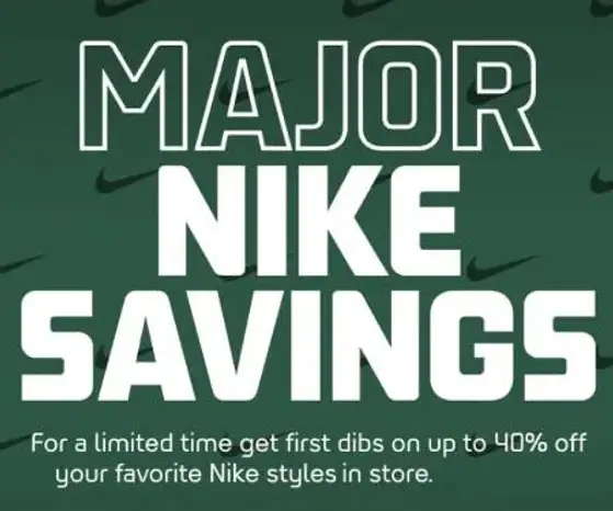 Shop in store and get up to 40% off your favorite Nike styles for a limited time.