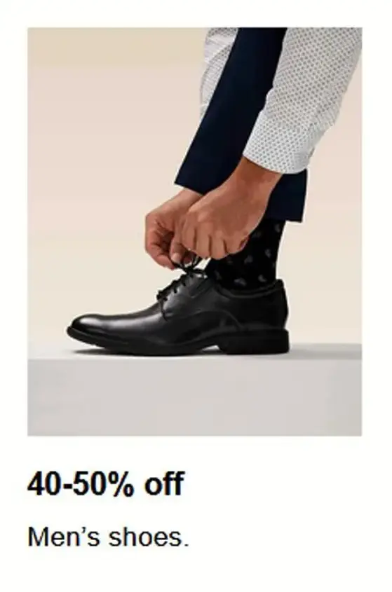 Save big now! Shop in store and get 40-50% off men's shoes.